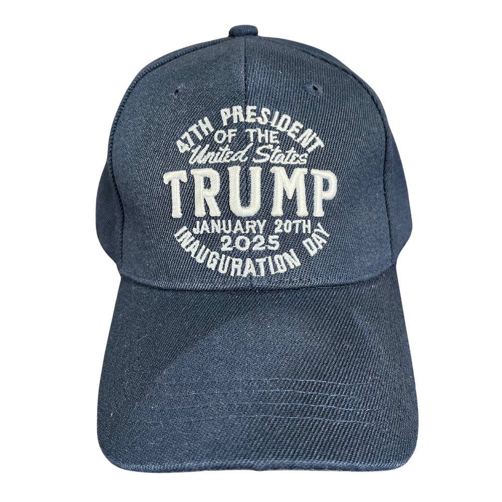 Celebrate the moment and show your support in bold style with this 47th President Inauguration Day Navy Hat. The front features clean, high-quality cream embroidery showcasing the date, title, and name in a classic arched layout. The navy-blue base gives it a sharp, patriotic look that’s versatile enough for everyday wear.