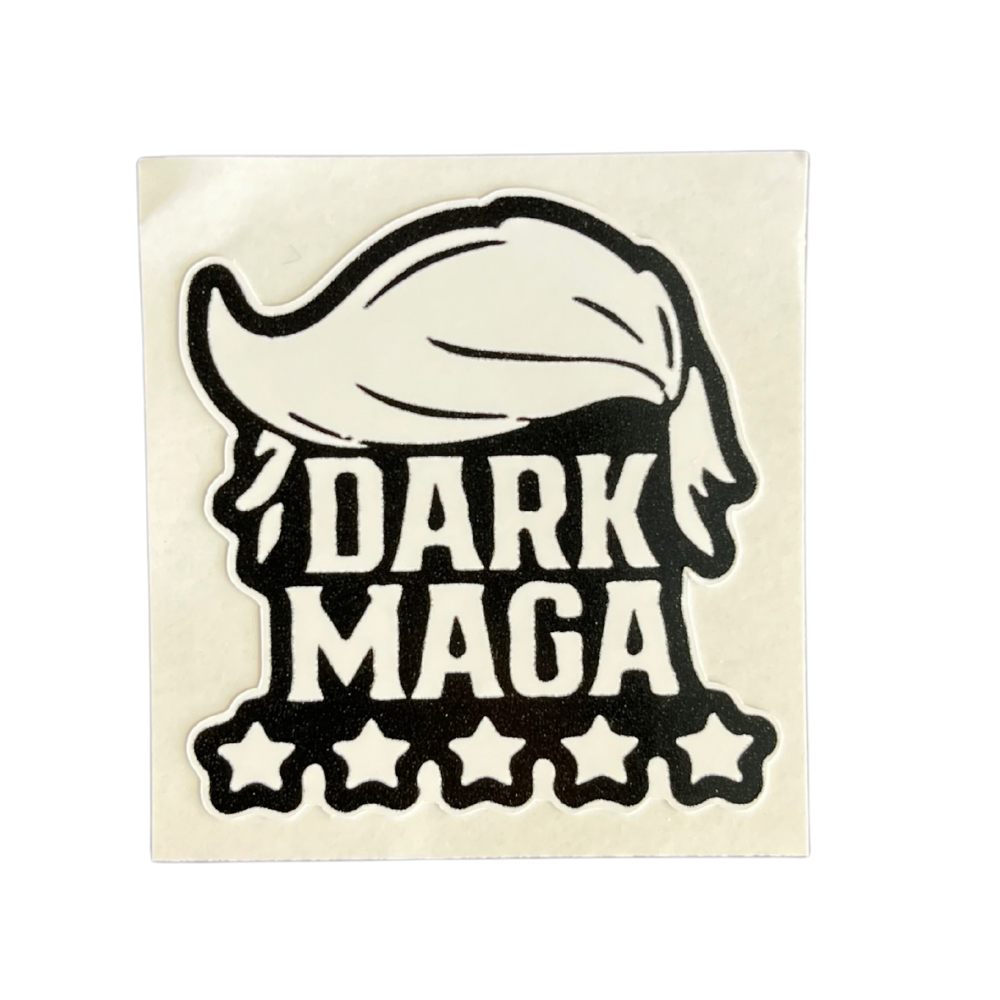 Dark MAGA Trump Hair Sticker — Durable, all-purpose adhesive vinyl sticker featuring bold American and political themes. Perfect for cars, laptops, tumblers, coolers, toolboxes, notebooks, and everyday gear.