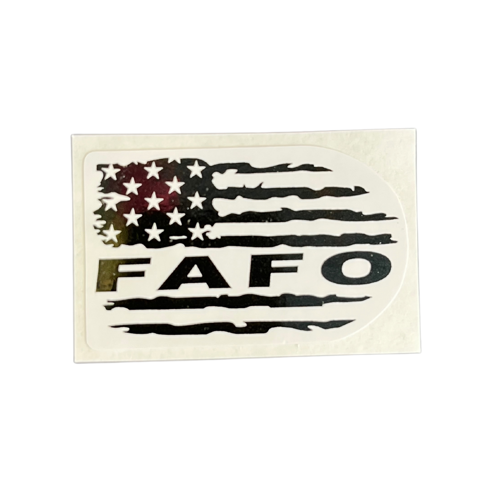 Distressed FAFO Sticker — Durable, all-purpose adhesive vinyl sticker featuring bold American and political themes. Perfect for cars, laptops, tumblers, coolers, toolboxes, notebooks, and everyday gear.