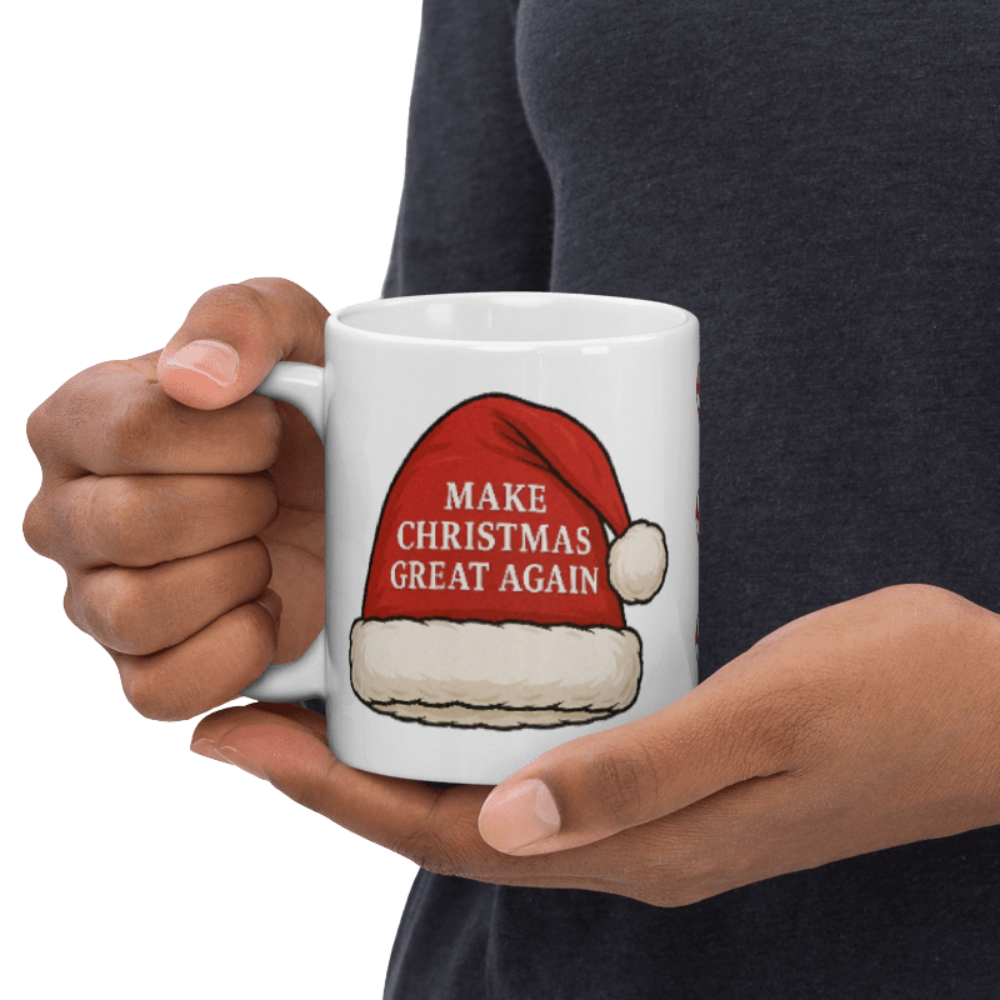 Part of the TrumpSuperStore Christmas Collection, this mug is merry, bright, and unapologetically festive — because some slogans deserve their own season.