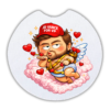 Trump Cupid car coasters 3-pack featuring bold Valentine artwork, satirical humor, and a cup holder-ready design made for daily use.