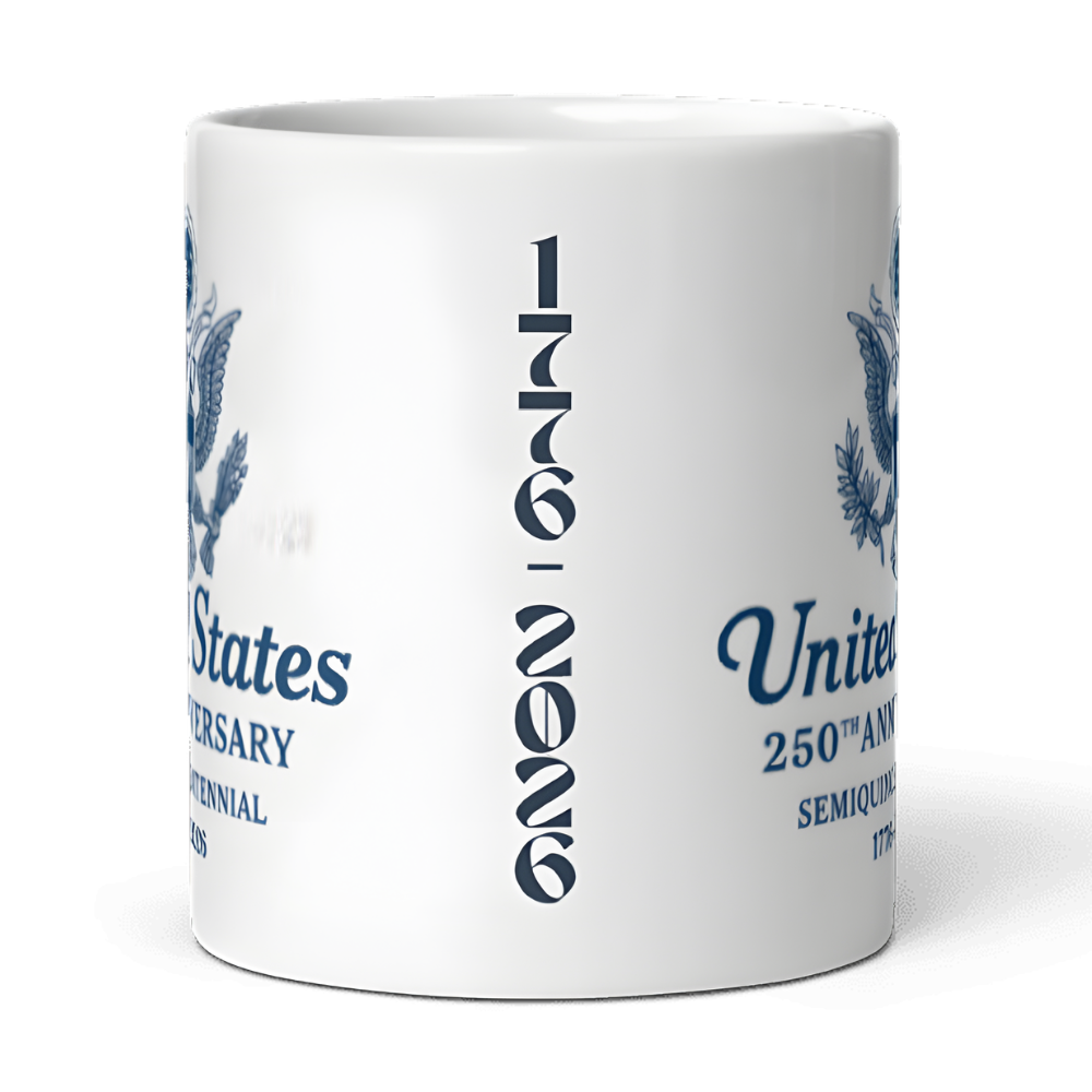 Celebrate the Semiquincentennial of the United States with the United States 250th Anniversary Emblem 12oz Mug — a distinguished tribute to 250 years of American excellence, unity, and leadership. Featuring the Great Seal of the United States above the proud inscription “United States – 250th Anniversary – Semiquincentennial – 1776–2026,” this design captures the enduring authority and honor of the American legacy.