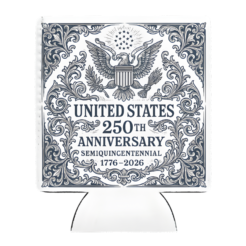 Honor America’s Semiquincentennial with timeless elegance through the United States 250th Anniversary Heritage White Koozie — a distinguished design that captures the dignity, depth, and grandeur of 250 years of American history. Showcasing the Great Seal of the United States framed by intricate ornamental scrollwork, it bears the proud inscription “United States – 250th Anniversary – Semiquincentennial – 1776–2026.”