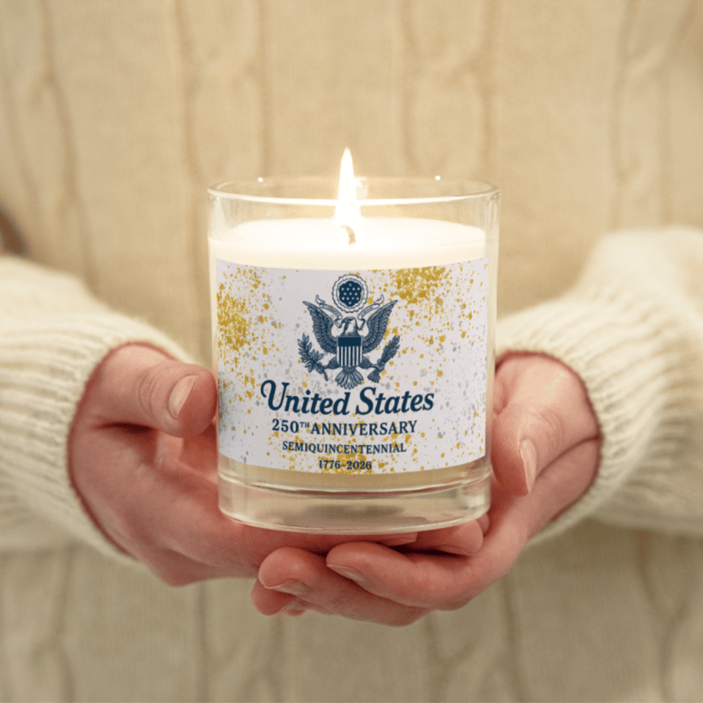 Honor the Semiquincentennial of the United States with the United States 250th Anniversary Small Candle — a refined tribute to 250 years of freedom, unity, and strength. Featuring the Great Seal of the United States in classic navy against a backdrop of elegant gold accents, this piece combines tradition with timeless design.