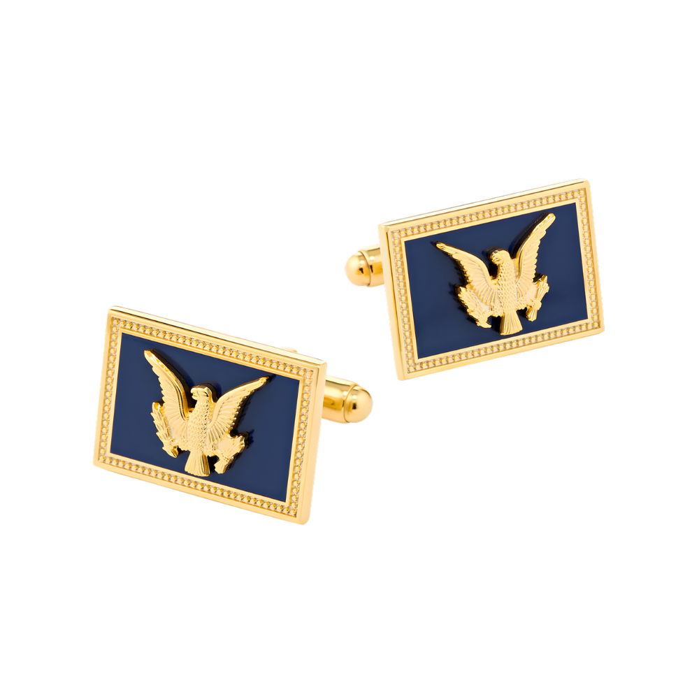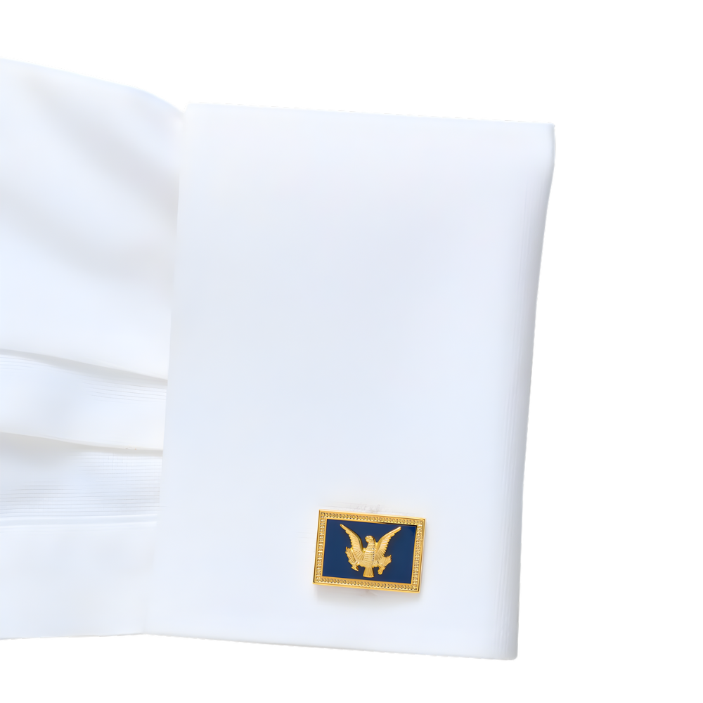 Honor naval heritage and timeless style with these USS Williamsburg navy and gold rectangle cufflinks. Featuring a bold, rectangular design with navy enamel and gold-tone accents inspired by the historic presidential yacht USS Williamsburg, these cufflinks bring classic maritime flair to formal attire. Perfect for dress shirts, business wear, or special occasions, they combine polished sophistication with a meaningful nod to American naval history.