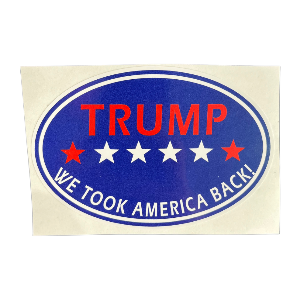 We Took America Oval Sticker — Durable, all-purpose adhesive vinyl sticker featuring bold American and political themes. Perfect for cars, laptops, tumblers, coolers, toolboxes, notebooks, and everyday gear.